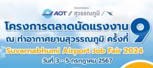 ตลาดนัดแรงงาน ท่าอากาศยานสุวรรณภูมิ ครั้งที่ 9 ในระหว่างวันที่ 3 – 5 กรกฎาคม 2567 ณ บริเวณศูนย์การขนส่งสาธารณะสุวรรณภูมิ